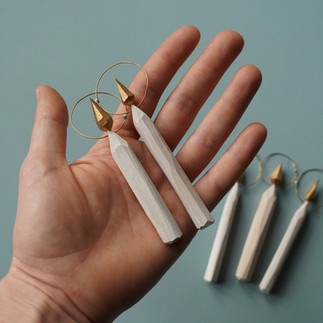 Under dagen får du tälja egna ljus av björkträ, måla dem och sätta i en ring av mässingstråd som bildar både ljusets gloria och praktisk upphängning. De täljda ljusen är en nyhet i Kerstins repertoar för i år – perfekt som juldekoration eller present.